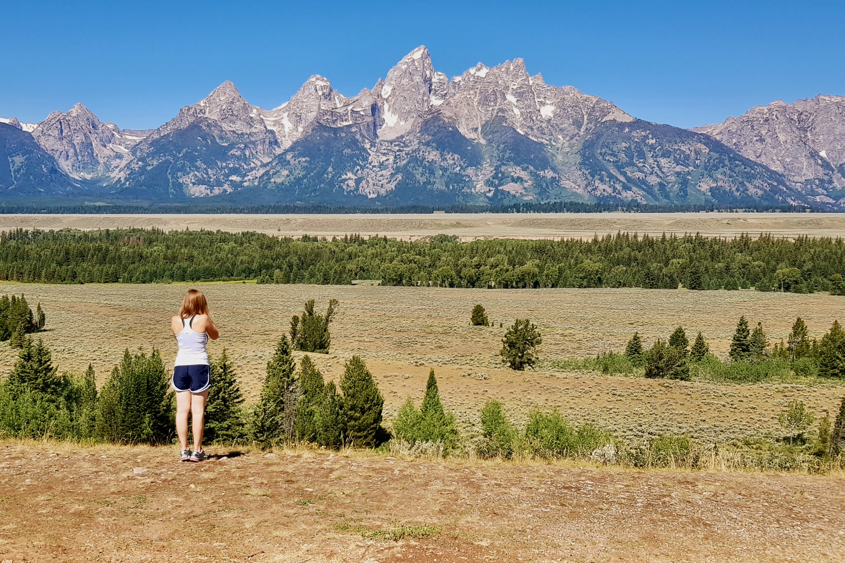 The Grand Tetons were named “les Trois Tetons” (the three breasts) by early French-Canadian explorers. We got our first close-up view of the three iconic peaks on the way to Jackson Hole Airport. My then boyfriend, now hubby was flying into this scenic airport to join us for the weekend.