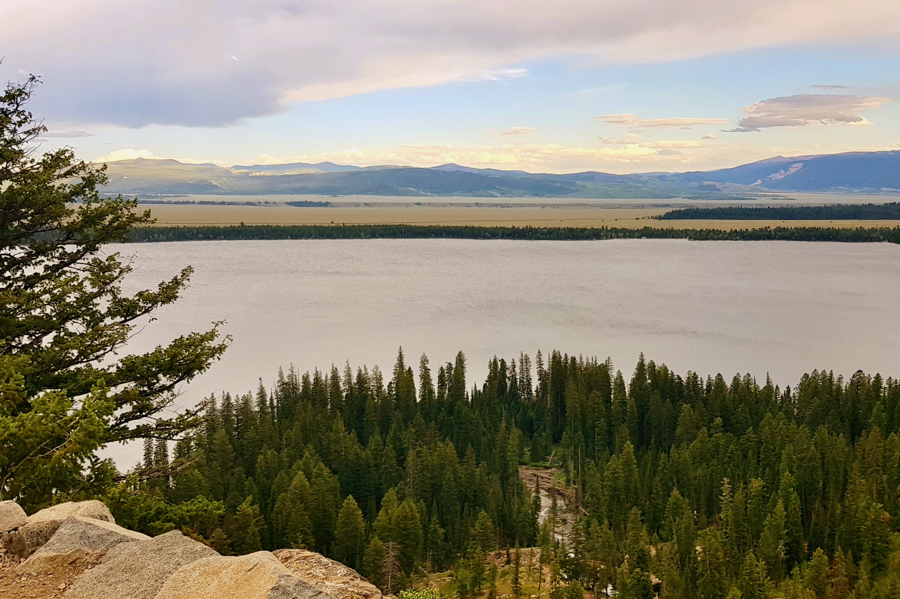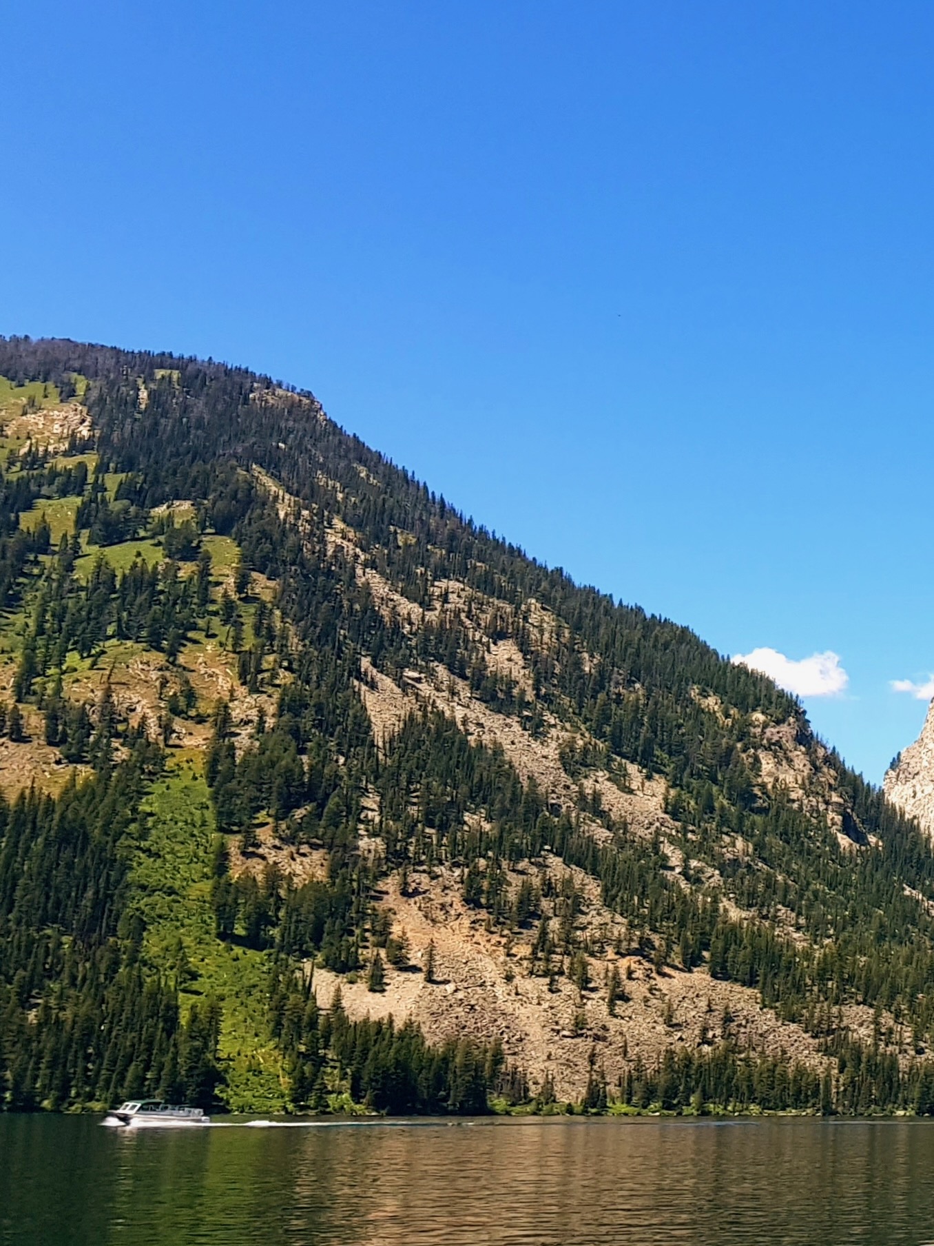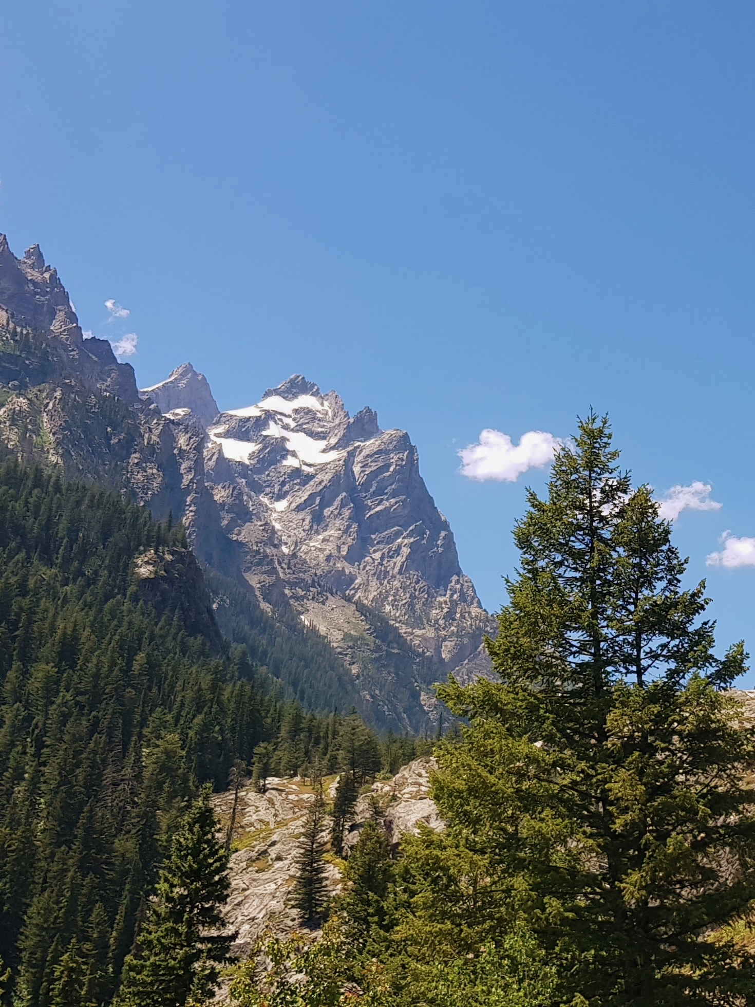 Full of energy after a day of driving, we were ready to take on one of the longer hikes in the park. Despite repeated discouragements from the park ranger, we started the 14.4-mile Lake Solitude Trail around 1 PM. The shuttle boat ride from Jenny Lake Visitor Center offers 360-degree views of the Grand Tetons and a head start on the trail.