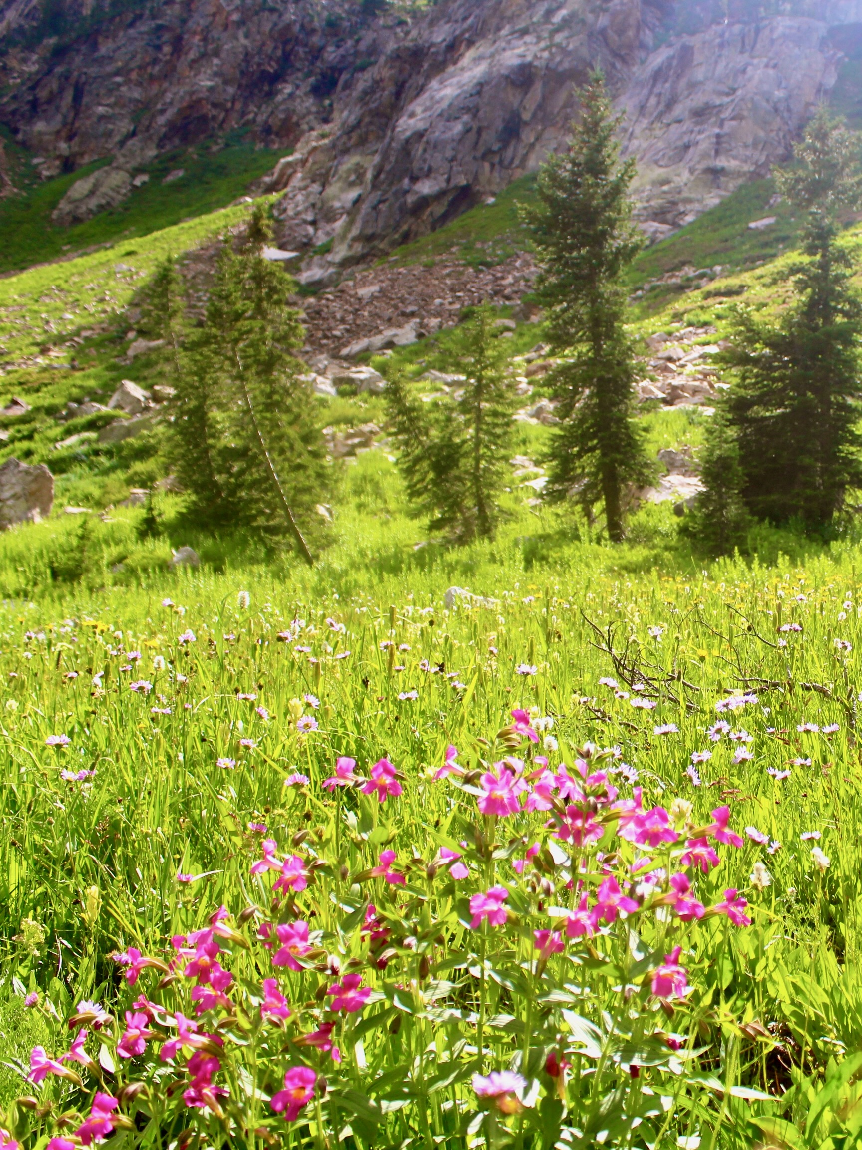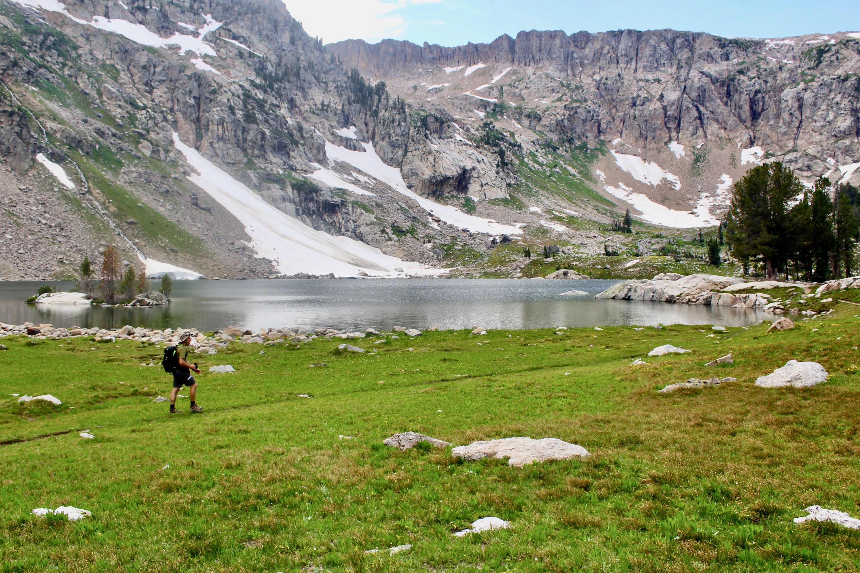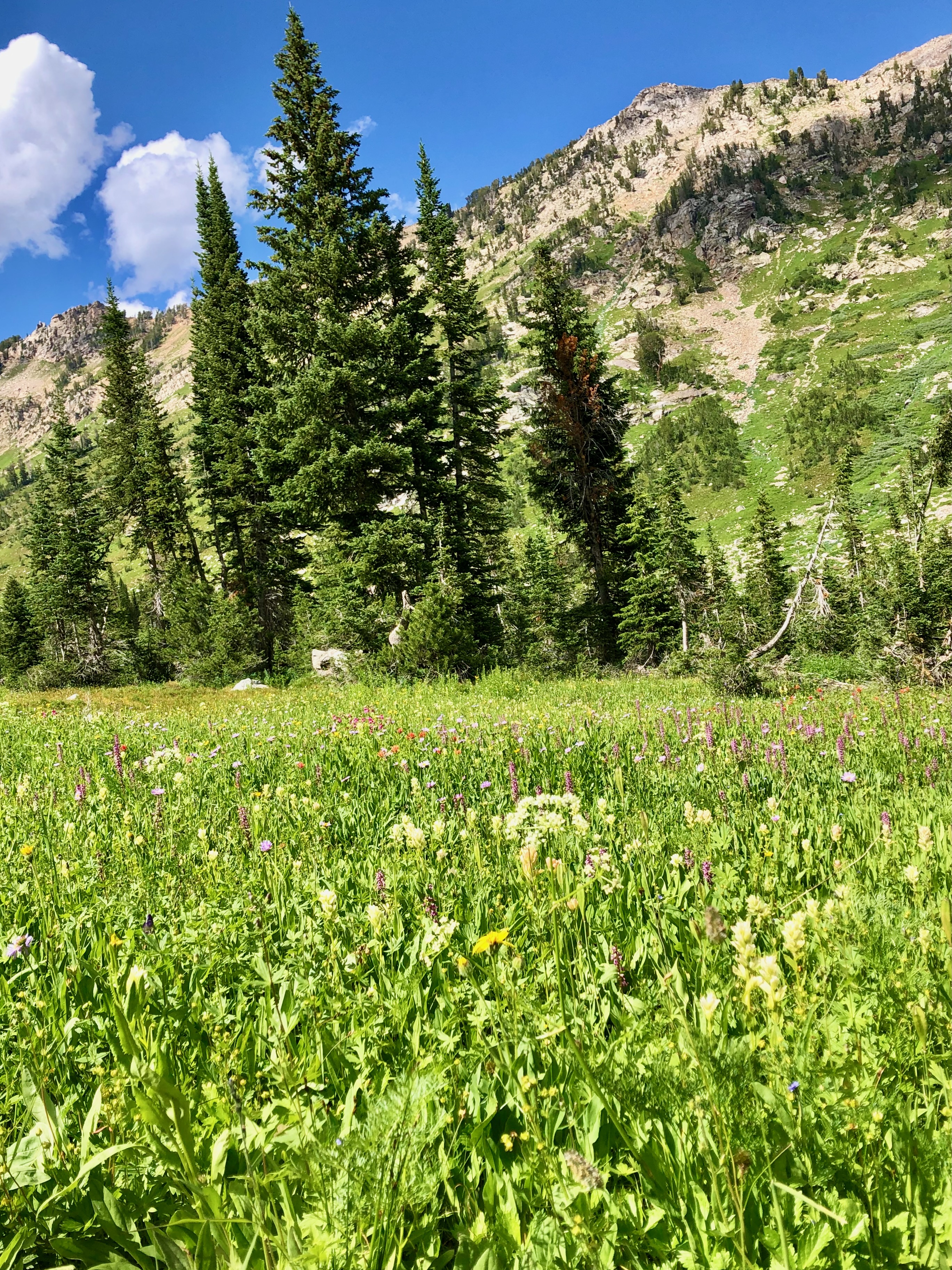 The views turn spectacular past Cascade Canyon Fork. The impressive Grand Teton peaks tower above a colorful wildflower carpet. We enjoyed the stunning scenery with no other soul in sight. End point of the trail is Lake Solitude, where my brother went for a true polar bear plunge.