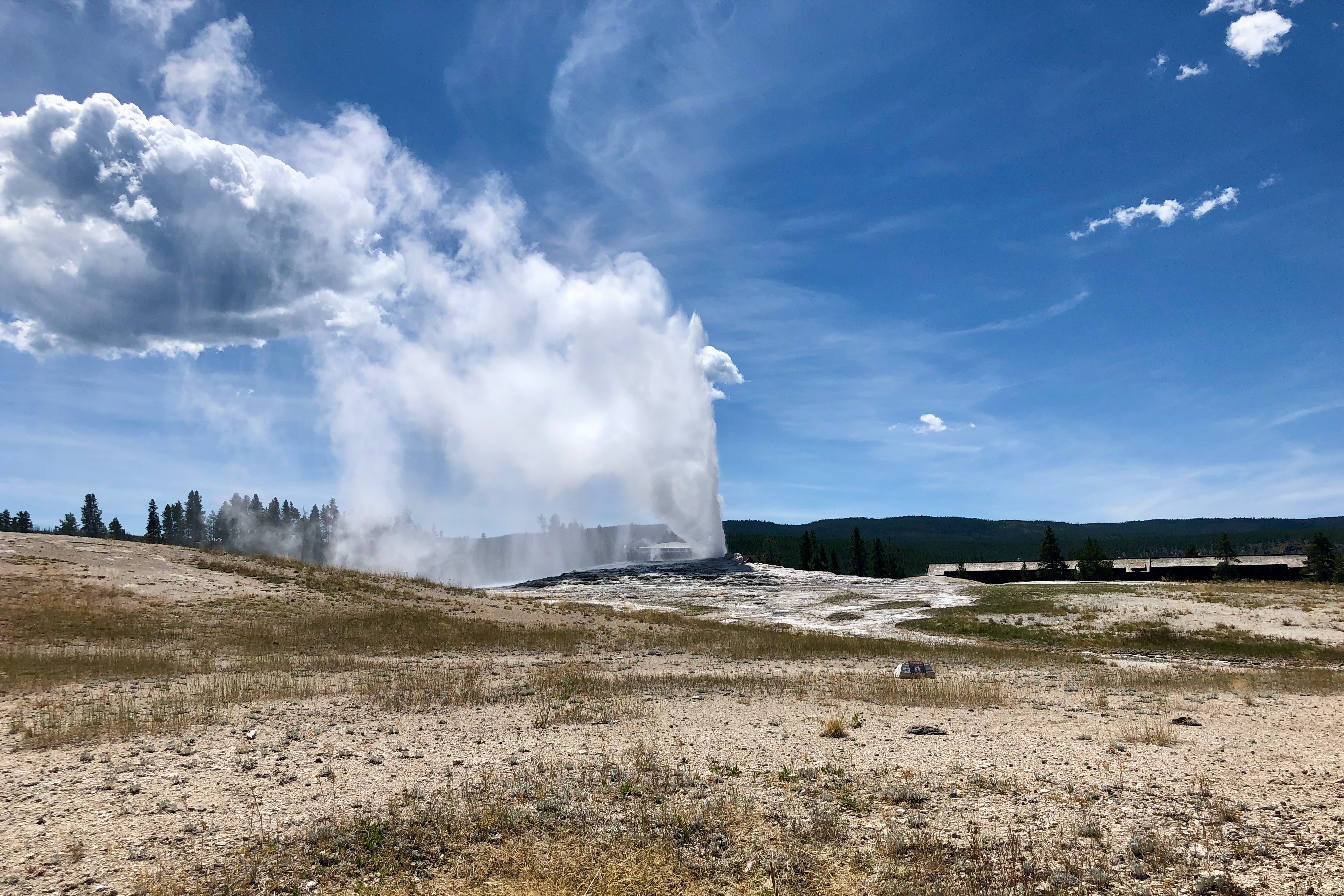 On our first day in Yellowstone, we woke up with the smell of eggs, but not the breakfast-type. The Upper Geyser Basin is home to Yellowstone’s most famous geyser. Park rangers can predict the eruption of Old Faithful to the minute. The eruption times are posted in the Old Faithful Visitor Center and happen about 60 minutes apart.