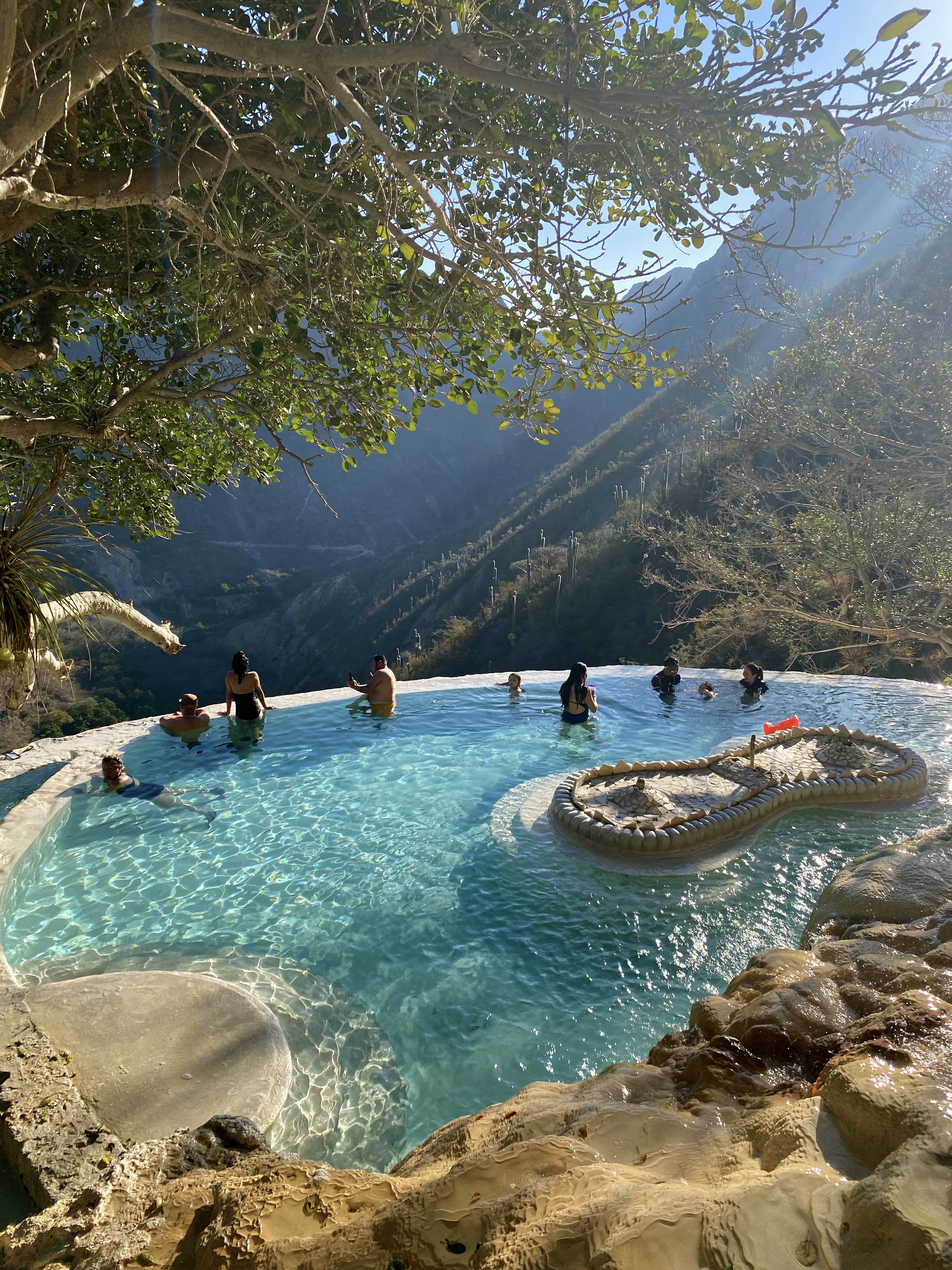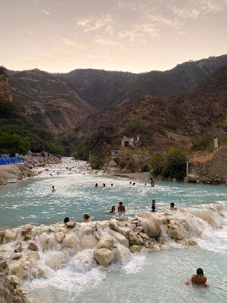When arriving to Grutas Tolantongo, we learned that the hot spring pools are not the only attraction. The turquoise river that cascades through the valley was a great surprise and unique sight to behold. Just like the pozitas, the river is heated by natural hot springs that originate from volcanic activity in the region. The result is a steaming, silky stream that offers excellent relaxing.