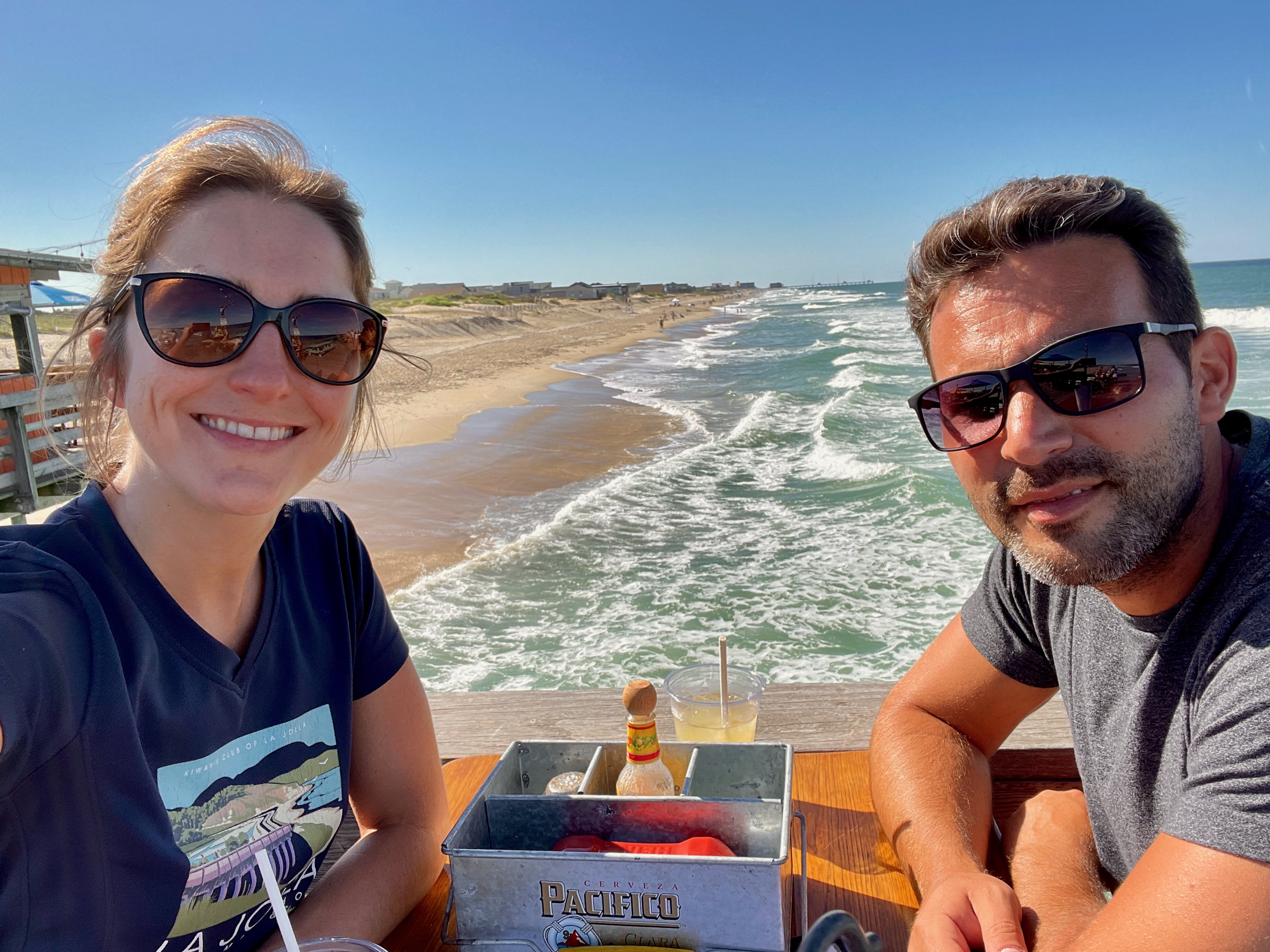 We stumbled upon Fish Heads Bar & Grill on our first trip to Outer Banks. It became an indispensable stop on each in-season visit, to start or end our trip OBX-style. The colorful shack is located on the pier in Nags Head, right after entering Outer Banks. During daily shrimp happy hour from 4 to 6 PM, they serve delicious peel-and-eat shrimp at just 20 cents a piece.