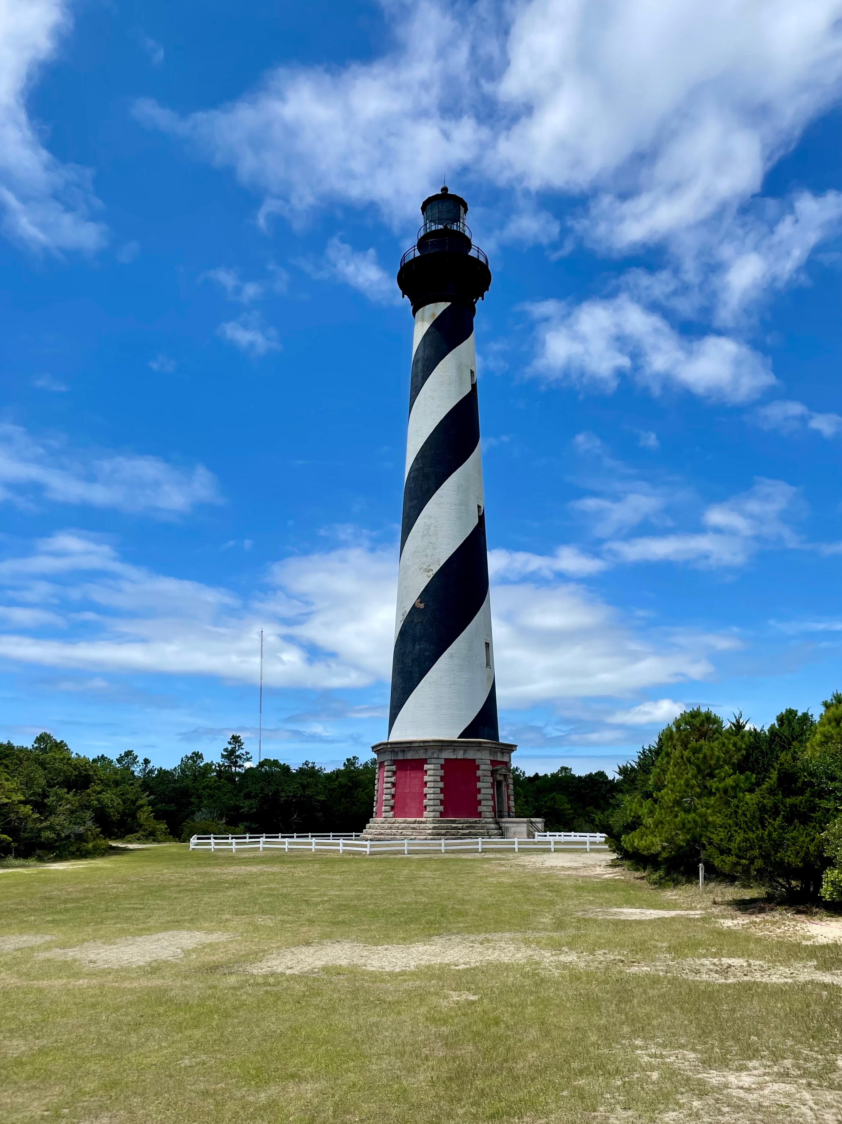 As one would expect on a narrow barrier island, the Outer Banks house several lighthouses. Of the five lighthouses to visit on OBX, Bodie and Hatteras Island’s black-and-white versions are definitely the most striking. The Bodie Island Lighthouse is scenically located in marshland.