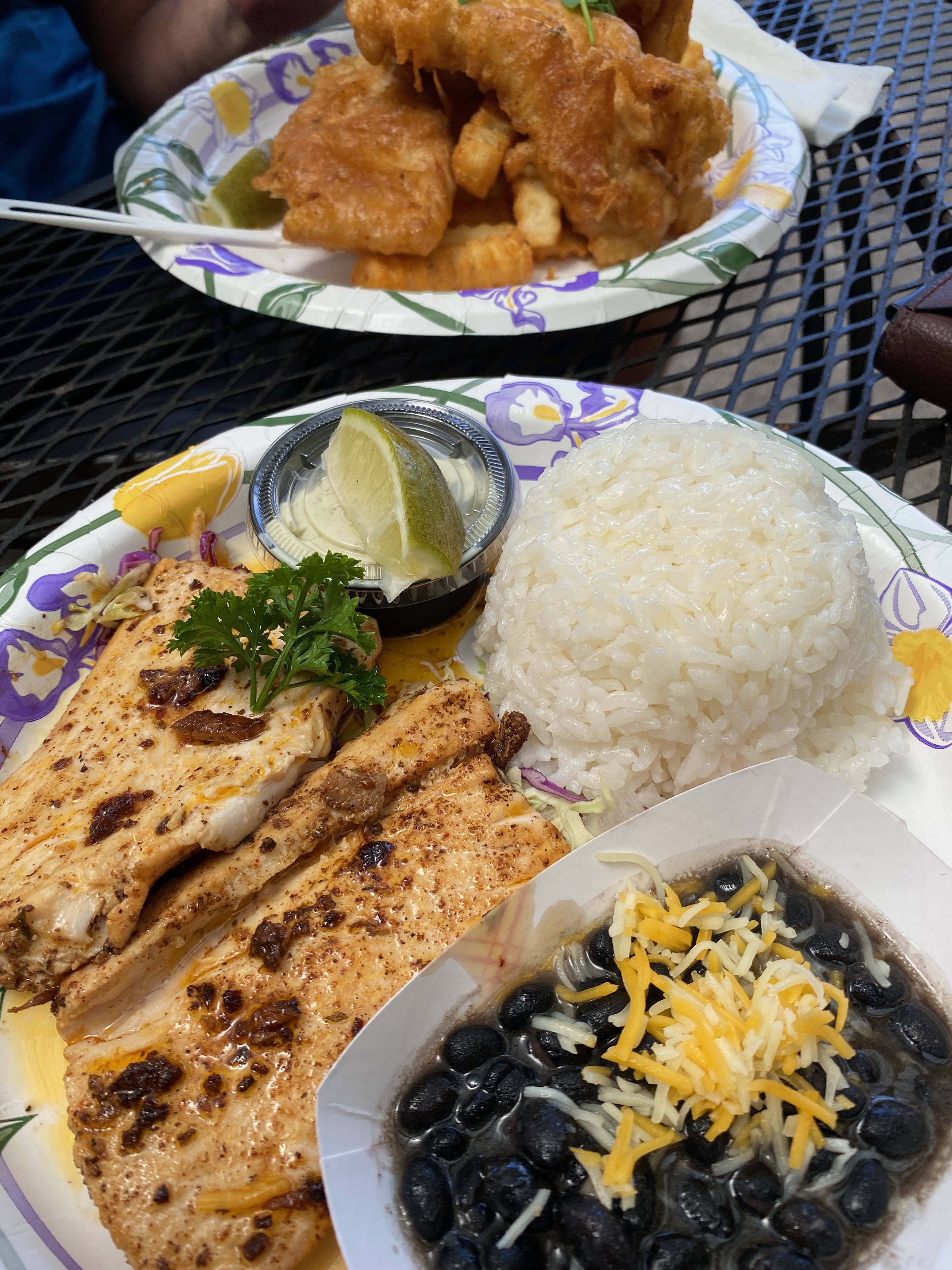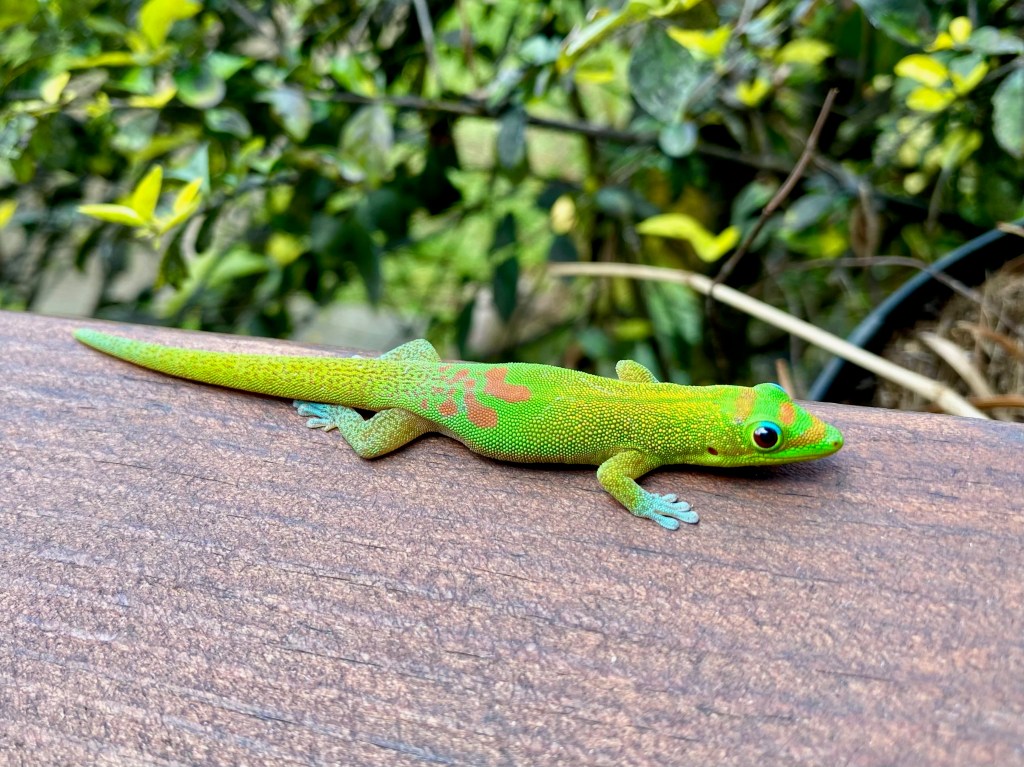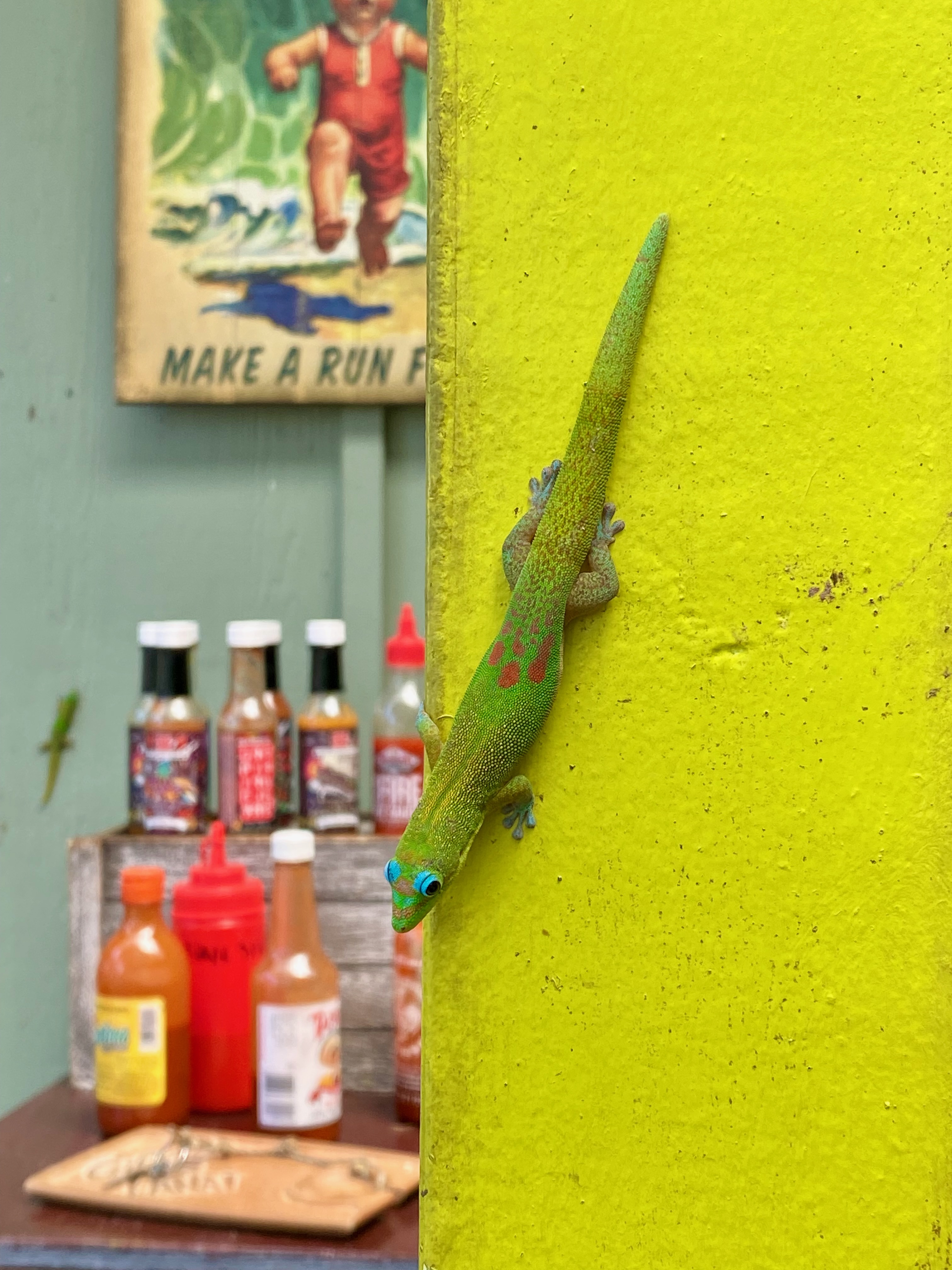 For lunch, we stopped in the colorful roadside town of Kapaau. Gill’s Lanai cooked us up a delicious grilled fish with a side of gecko.