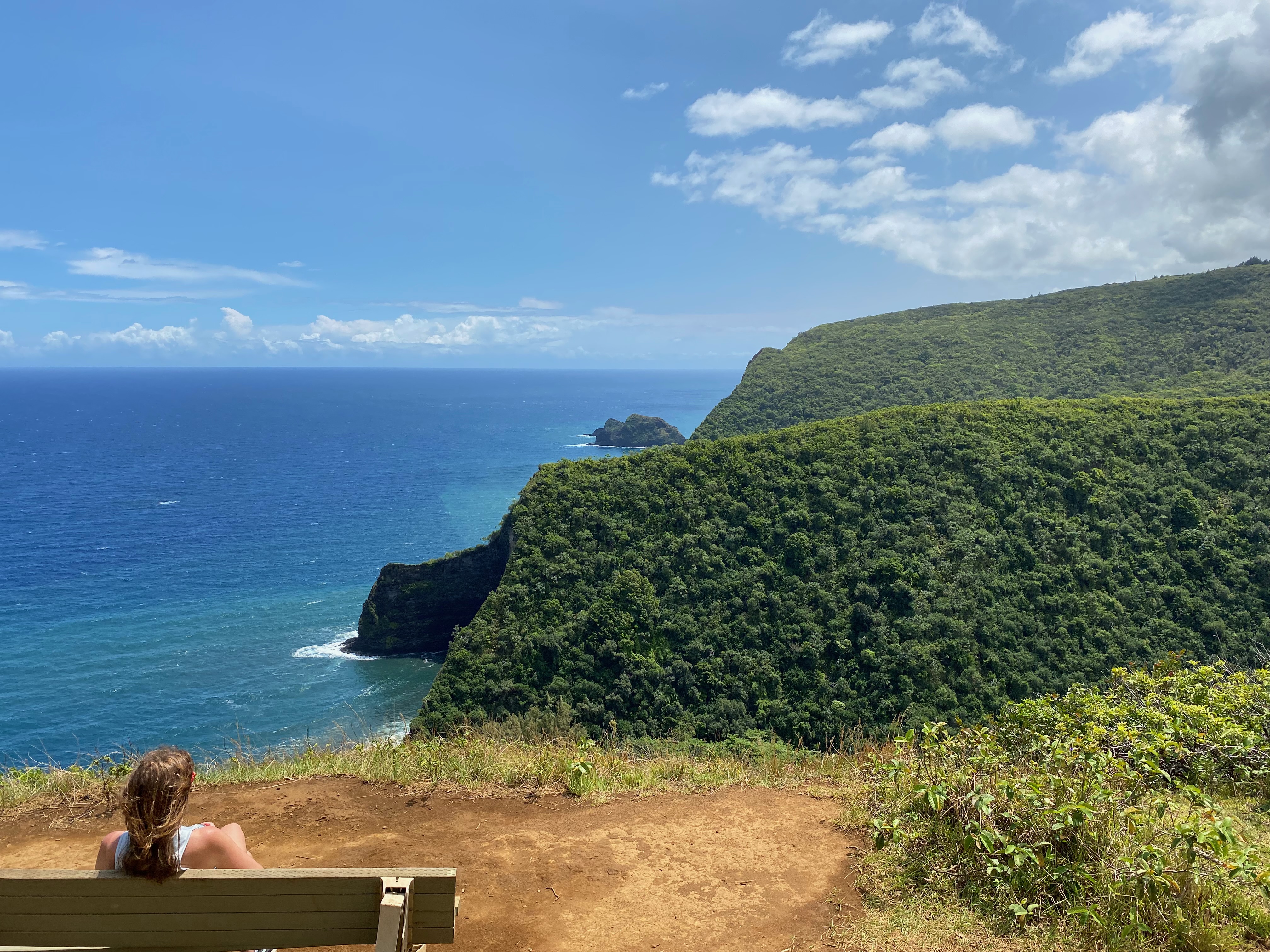 After mentally preparing for an overnight hike in Waipi’o, I was determined to get some hiking miles in Pololū Valley. The Awini Trail climbs the opposite side of the valley to an amazing lookout point on the ridge. The trail runs behind the black sand beach and can be hard to find, until a clear path of switchbacks starts leading up.