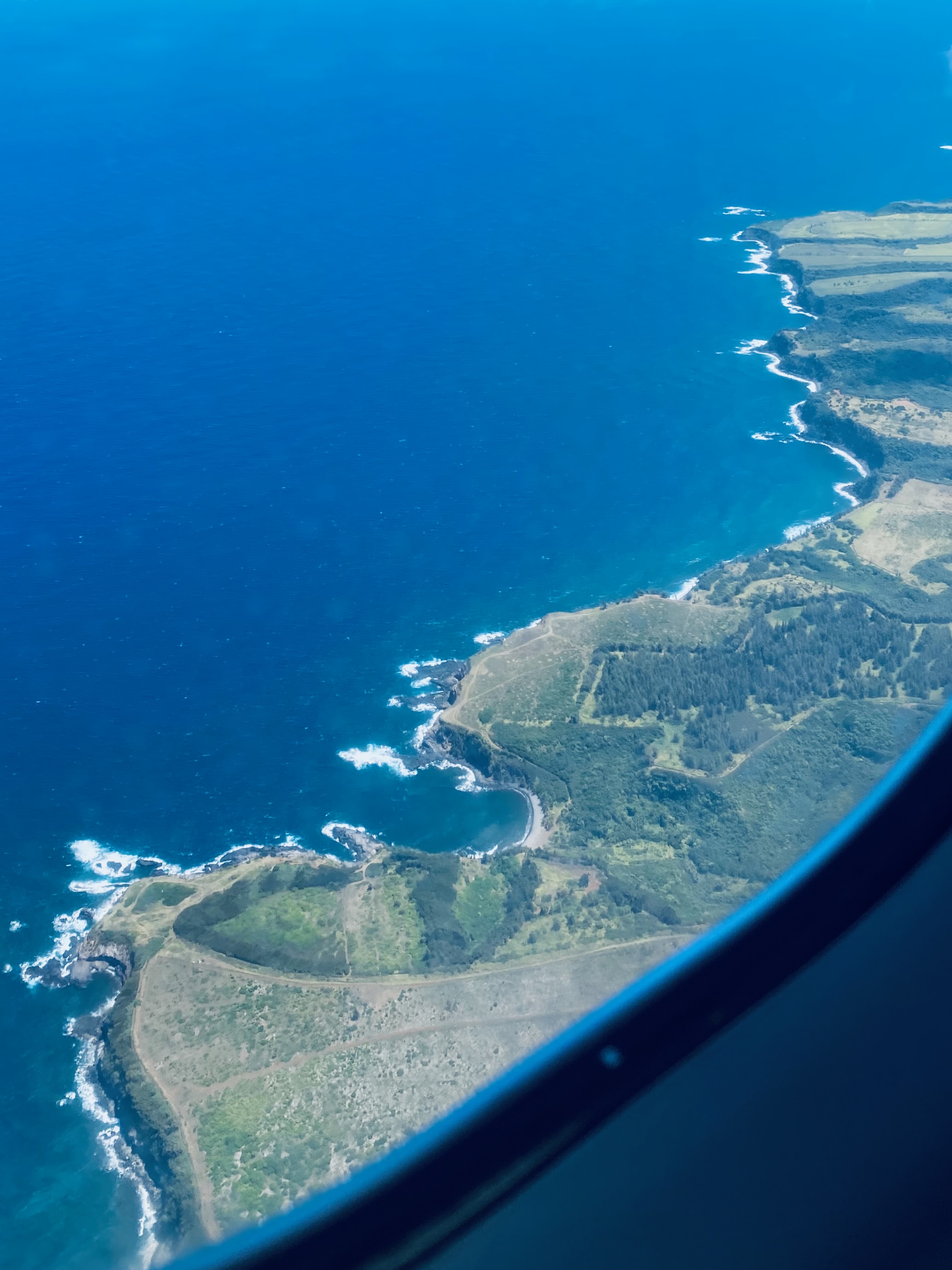 We arrived at Kona Airport on a short Hawaiian Airlines flight from Maui. The presence of multiple active volcanoes is visible from the air, as old lava flows dominate the landscape.