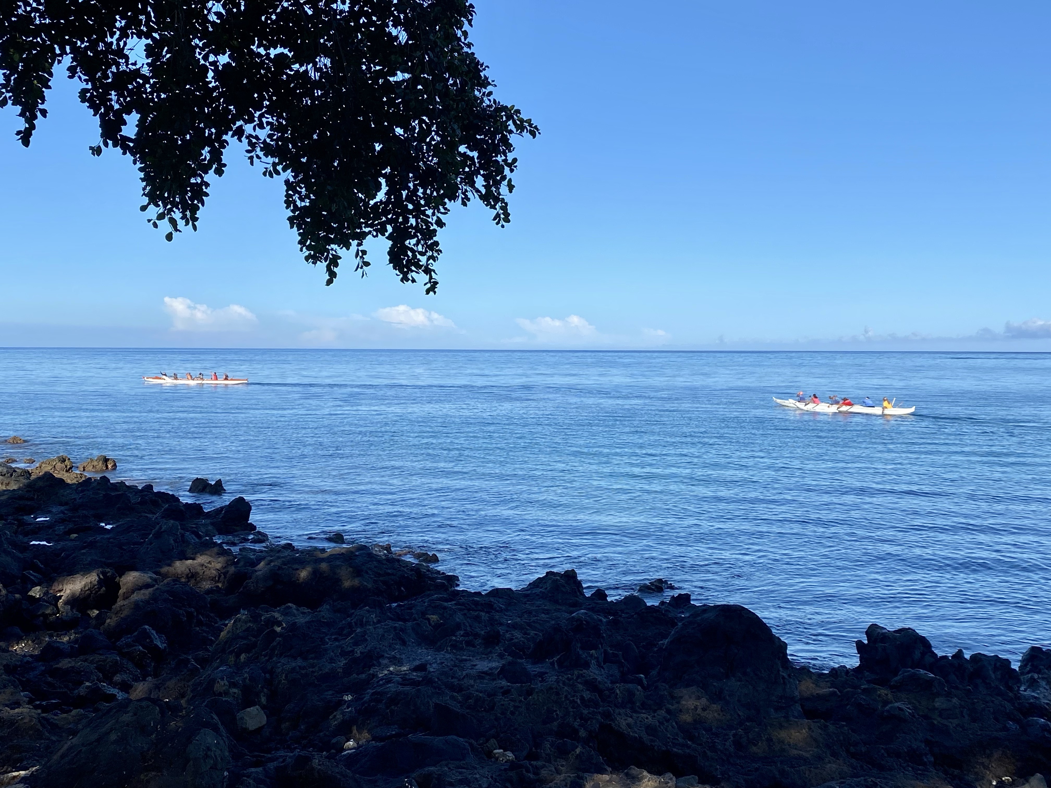 The bay is used as a training area for traditional Hawaiian outrigger canoe clubs. We got to see them paddling off during breakfast.