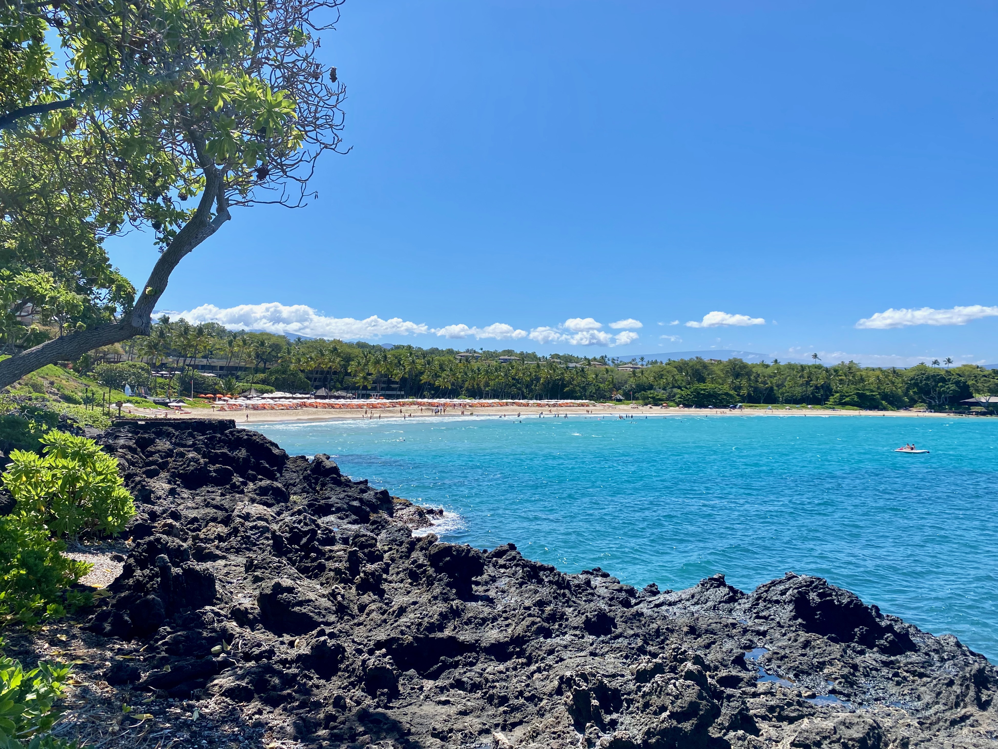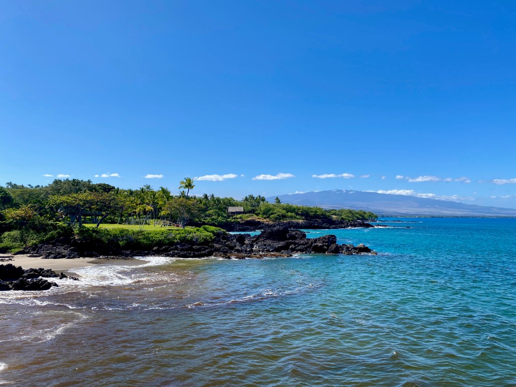 The Kohala Coast is a sunny stretch of stunning beaches on the northwestern side of the island. From Spencer Beach Park, a segment of the historic Ala Kahakai Trail runs along the coast to Hapuna Bay. We followed the trail-by-the-sea to Mauna Kea Beach. Arriving by foot has a clear advantage over limited public parking at the luxury Mauna Kea Beach Hotel.