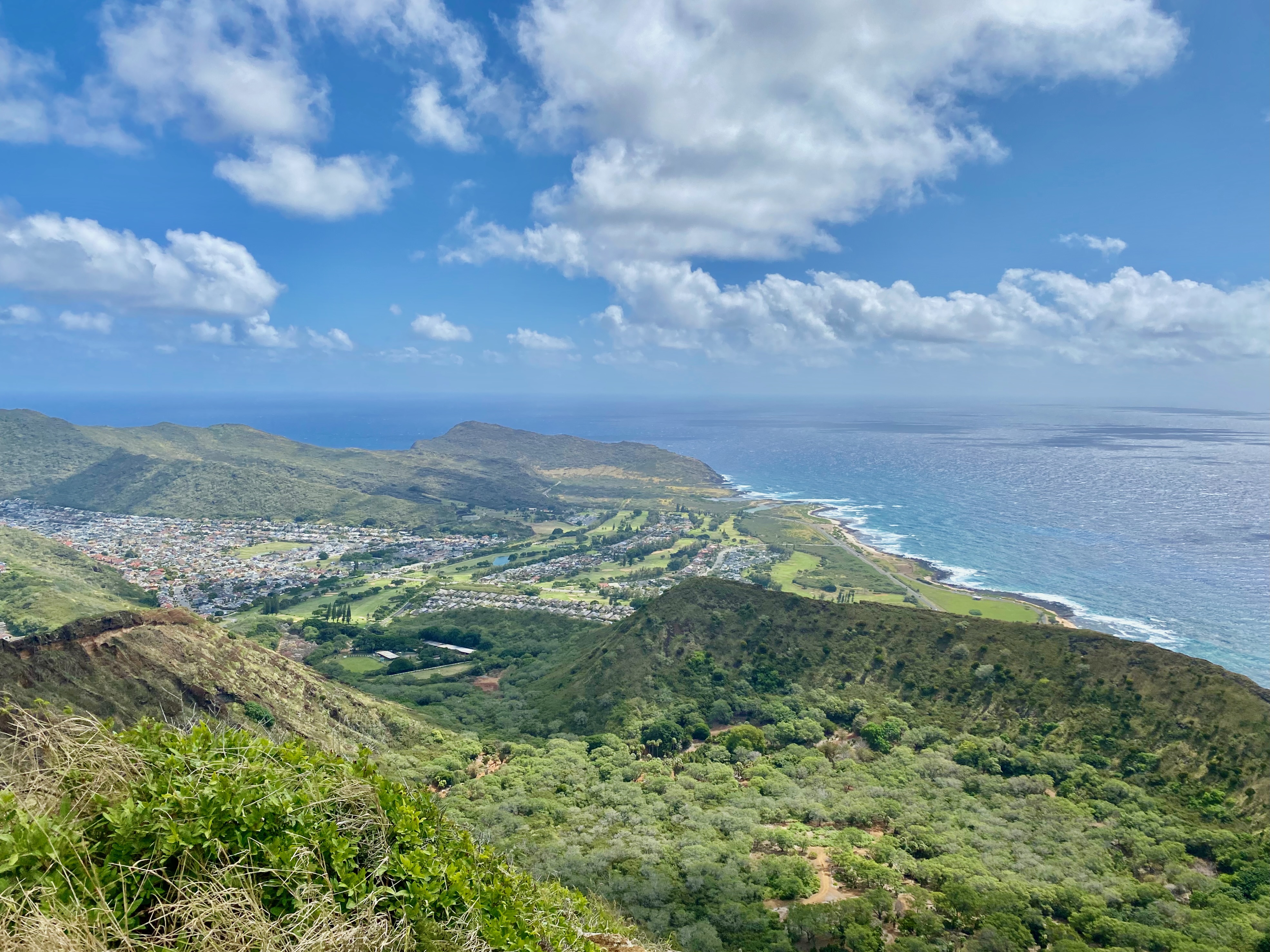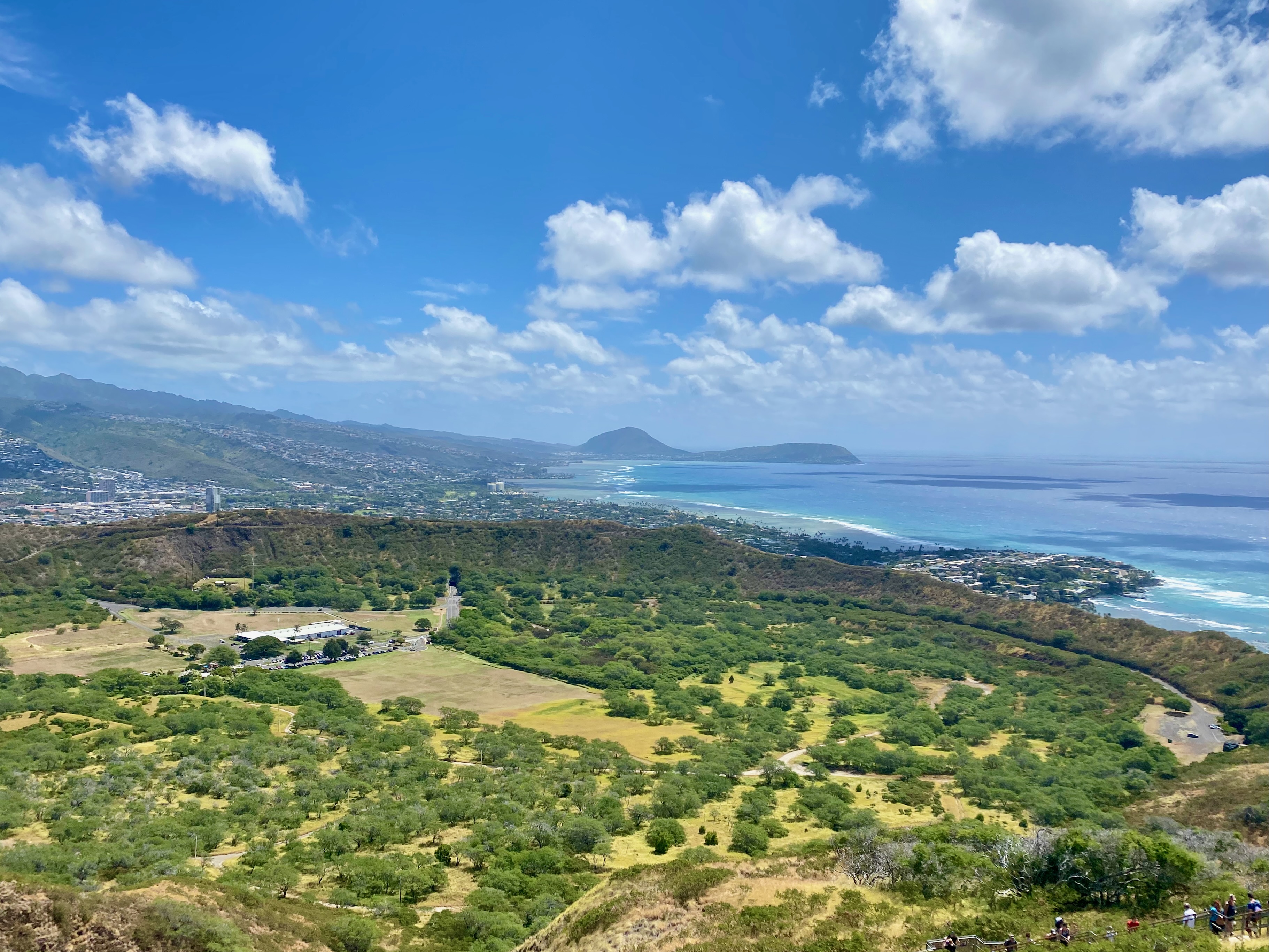 Parking at Diamond Head State Park is limited. We waited about half an hour in an organized line before it was our turn to park. This was followed by another line to buy entry tickets to the park. The trail is only 1.6 miles round-trip, but packs a lot of stunning views in this short distance. Being less strenuous than the Koko Crater Trail, it is also much more crowded.