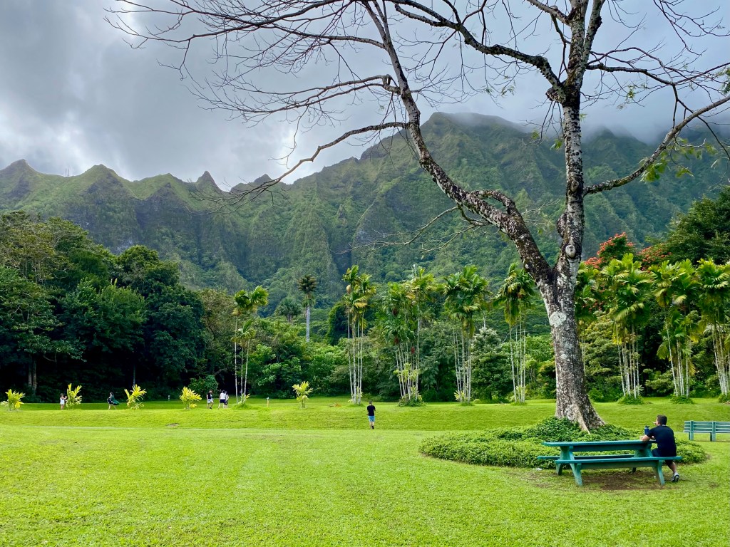 On the way back to Honolulu, we visited Hoʻomaluhia Botanical Garden. Admission is free and the backdrop is spectacular. We picked up a delicious poke from Foodland and enjoyed lunch in the middle of this green oasis.