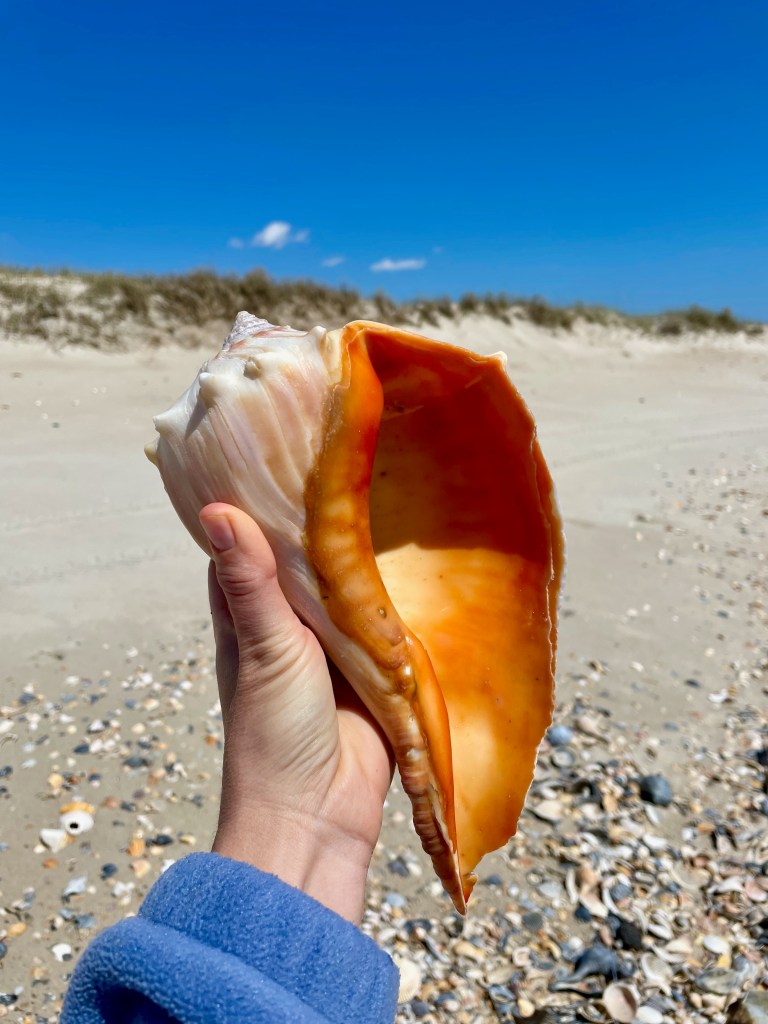 We found that shelling on False Cape is entirely dependent on the elements. While living in nearby Norfolk, we took many walks with mixed success. On good days, we found giant knobbed whelks, channeled whelks, moon snails, sand dollars and starfish. But on other days, we returned practically empty handed.