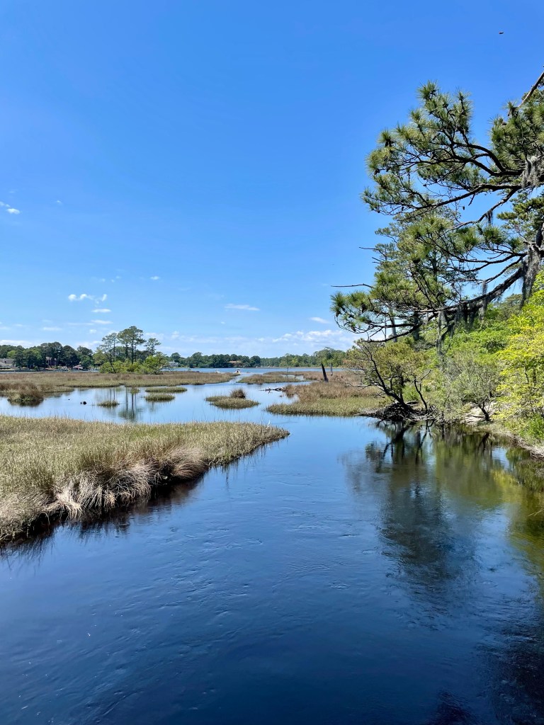 The other side of First Landing is found inland, but also flanked by water. The scenery is made up of maritime forest, bald cypress lagoons and the incredibly still waters of Broad Bay.