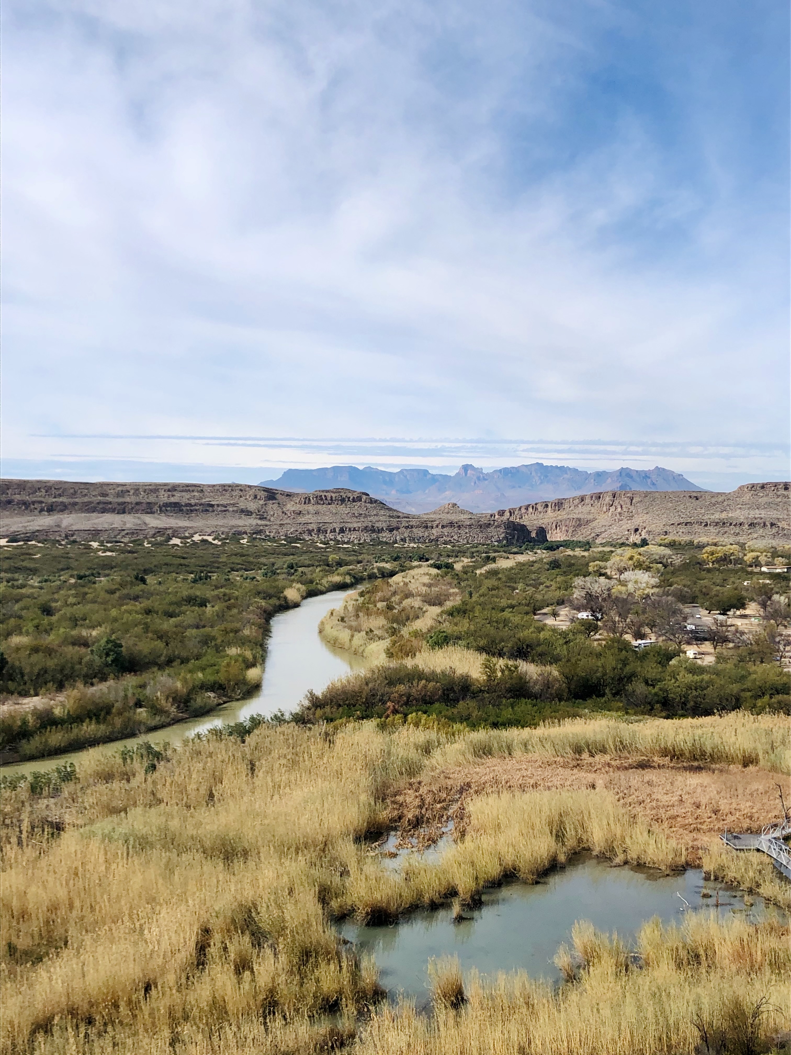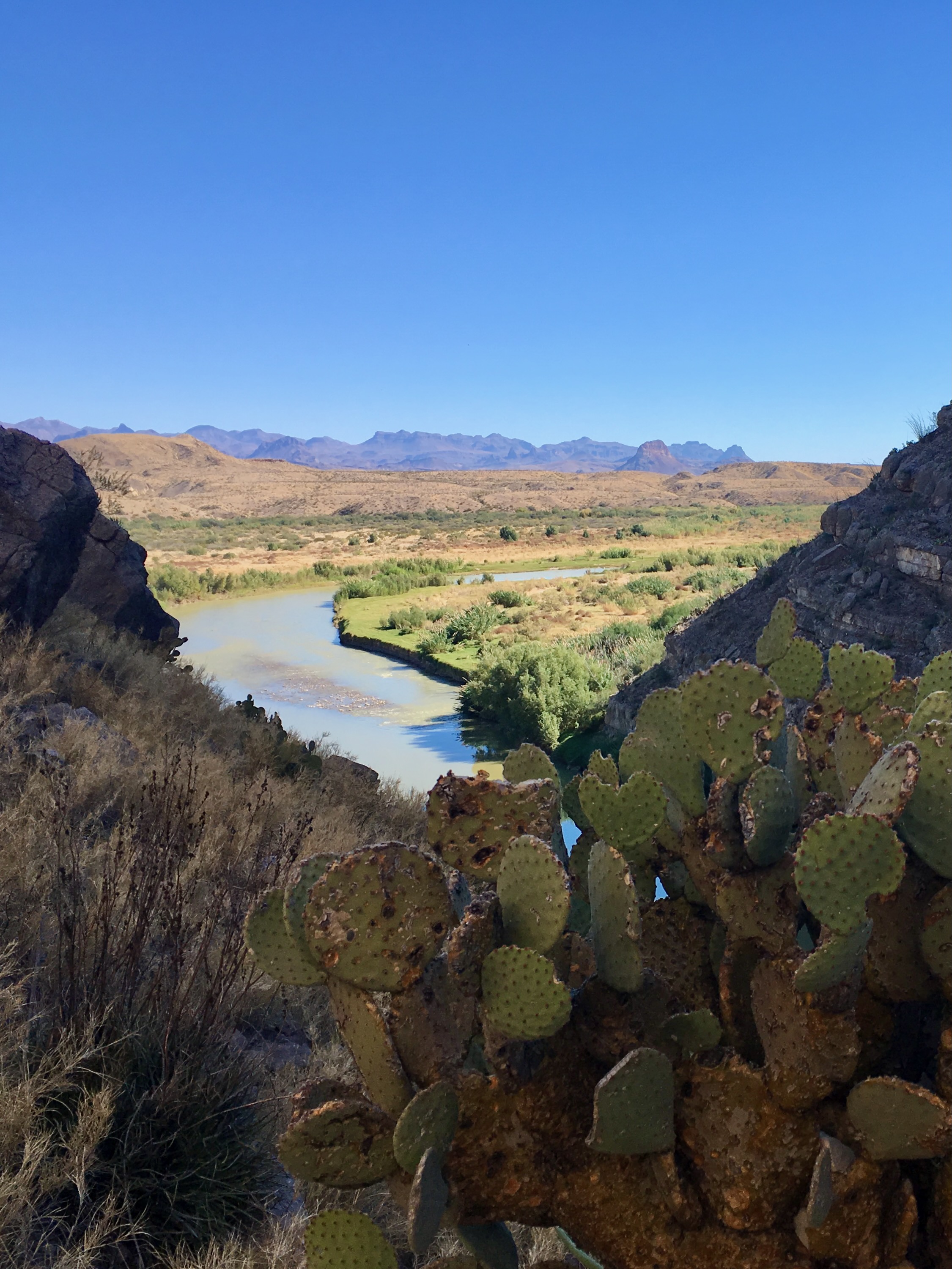 The Rio Grande river makes up the natural border between the USA and Mexico. A 0.75-mile loop trail leads to a viewpoint overlooking both countries.