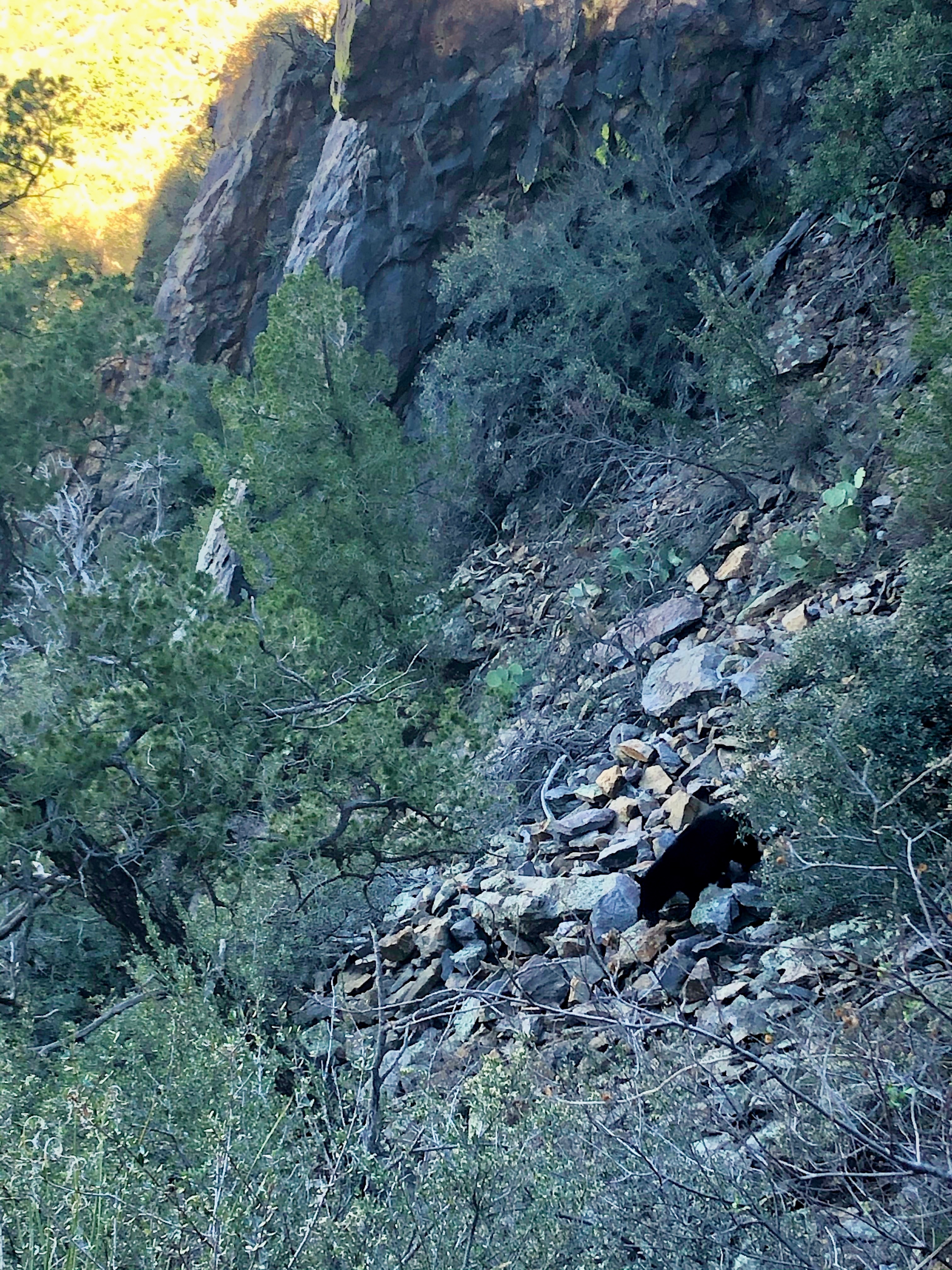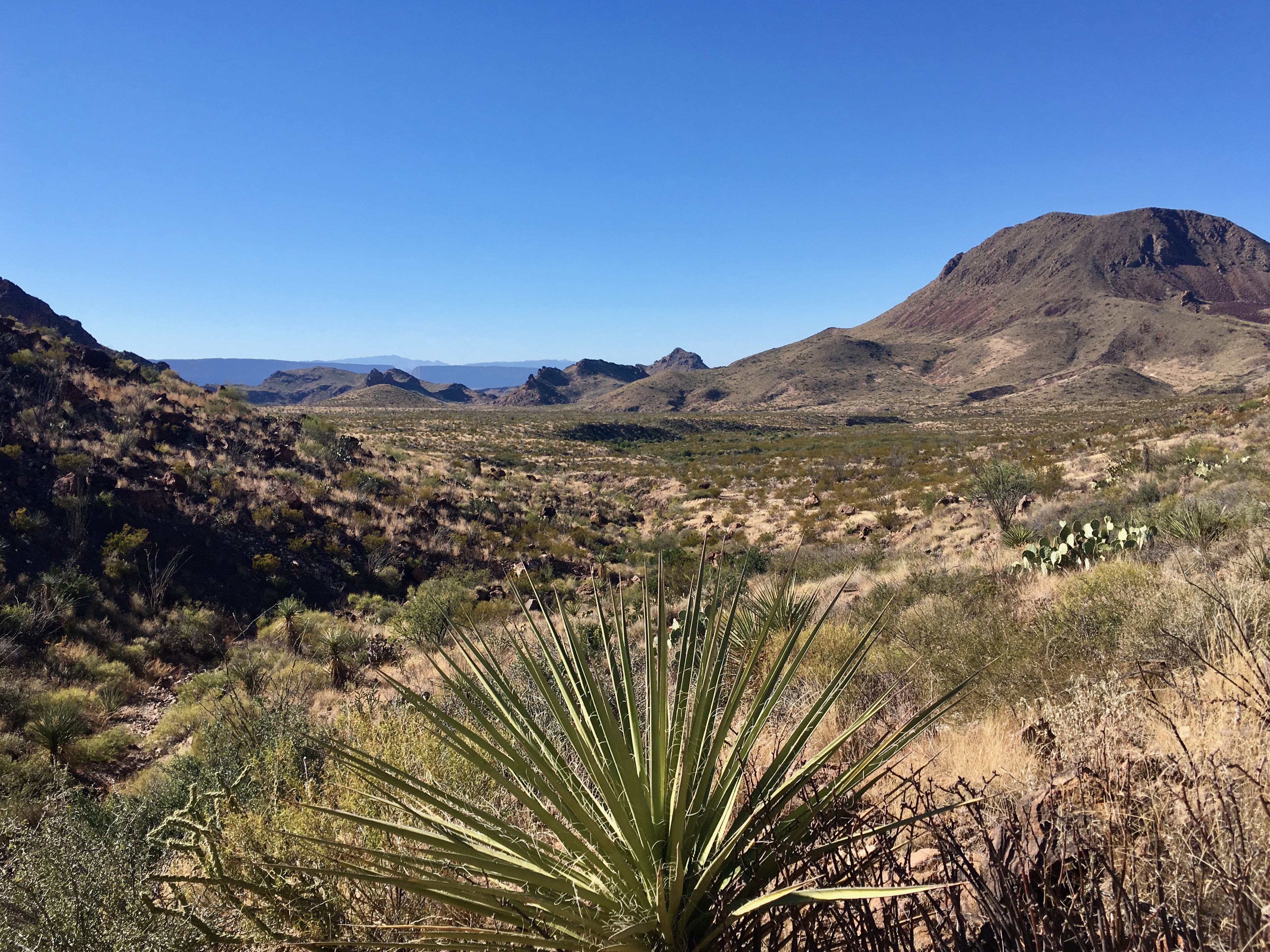 The South Rim Trail is an impressive day hike that departs near the Chisos Basin Visitor Center. It can be hiked as a 12.5-mile loop, taking six to eight hours to complete. If hiking clockwise, the trail follows the Pinnacles Trail to climb out of the Chisos Basin. At the end of December, the valley was coated in vibrant fall colors. We even spotted one of the few black bears living in Big Bend: there are about 30 to 40 in the entire park.