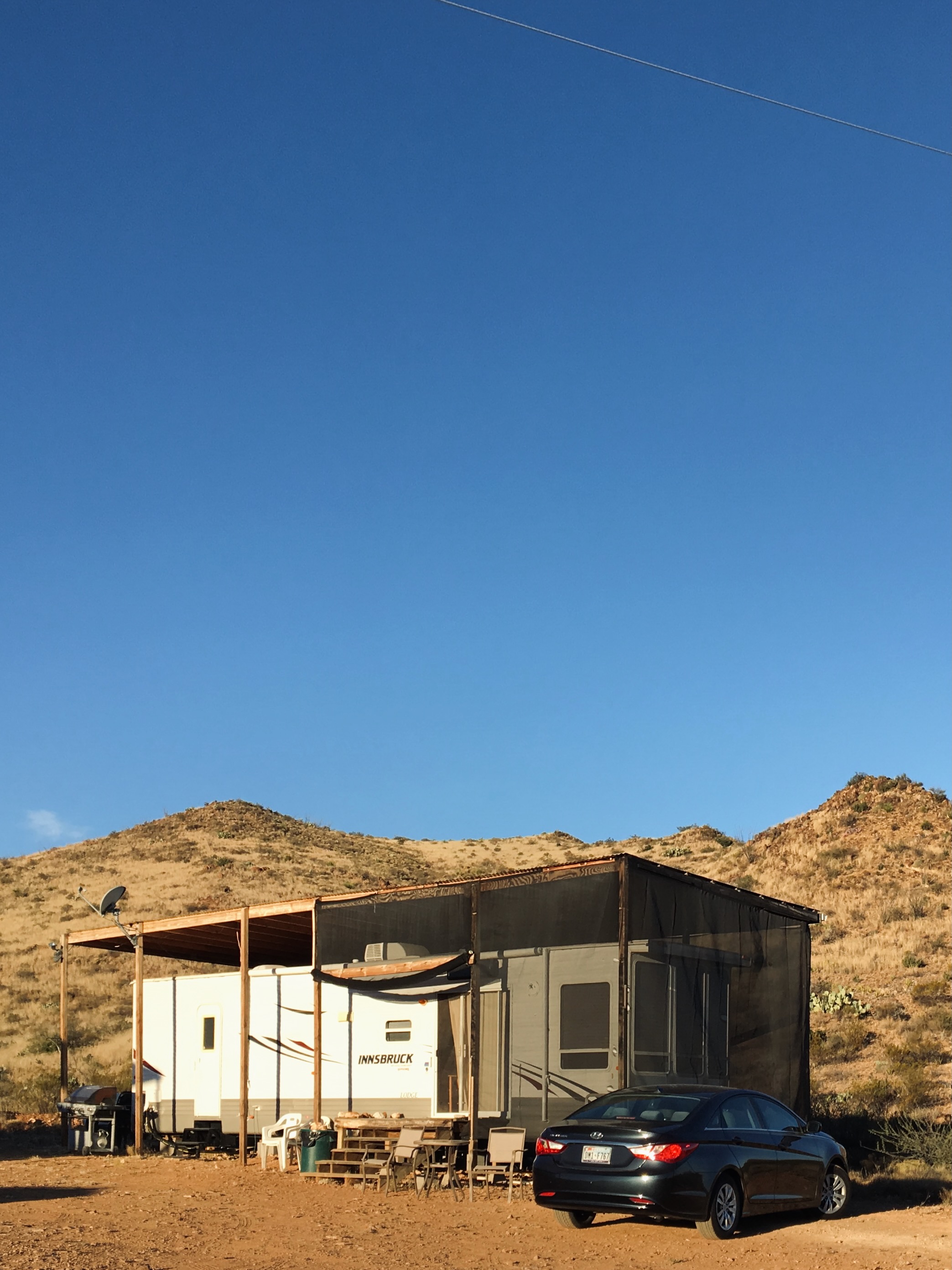 If you don’t plan on camping, the only lodging option inside the national park is the Chisos Mountain Lodge. Located in the Chisos Basin area, the lodge rivals the views from the campground. Any accommodation outside of the national park entails at least a one-hour drive, with the closest option being the town of Terlingua. On my first trip to Big Bend, we rented a trailer parked on a ranch outside of Terlingua. With limited options in the area, it is recommended to reserve ahead.