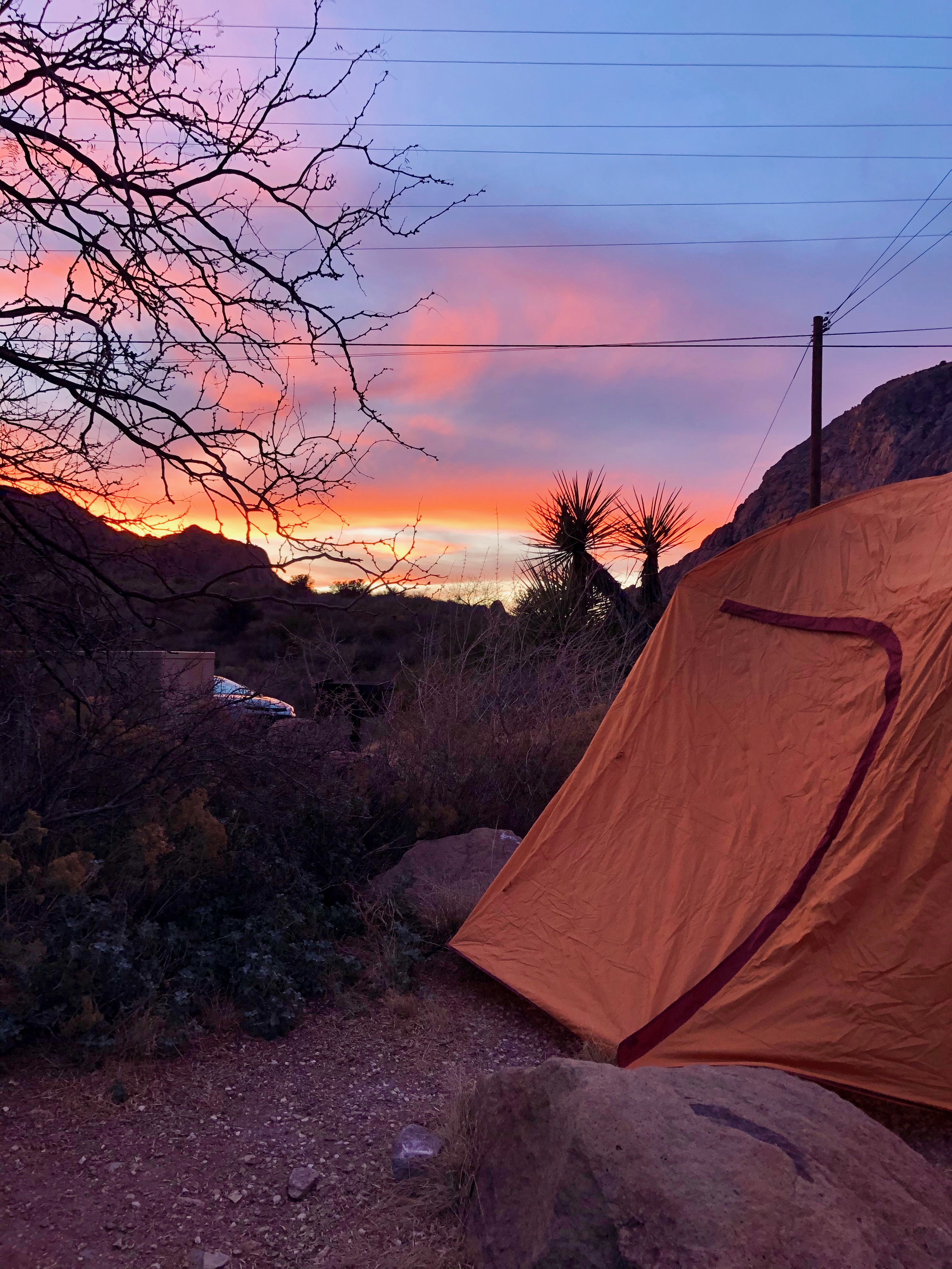 Since visiting Big Bend for the first time, I was dreaming of pitching a tent at the stunning Chisos Basin Campground. Surrounded by the Chisos Mountains, the views here are nothing short of spectacular. It’s also the perfect base for some of the best hikes in the park. The campground has drinking water and restrooms, but no showers or hookups. You’ll need to plan ahead for a camping trip in high season (November-April) as reservations fill up weeks in advance. There are three NPS campgrounds and one concession RV-park inside of Big Bend.