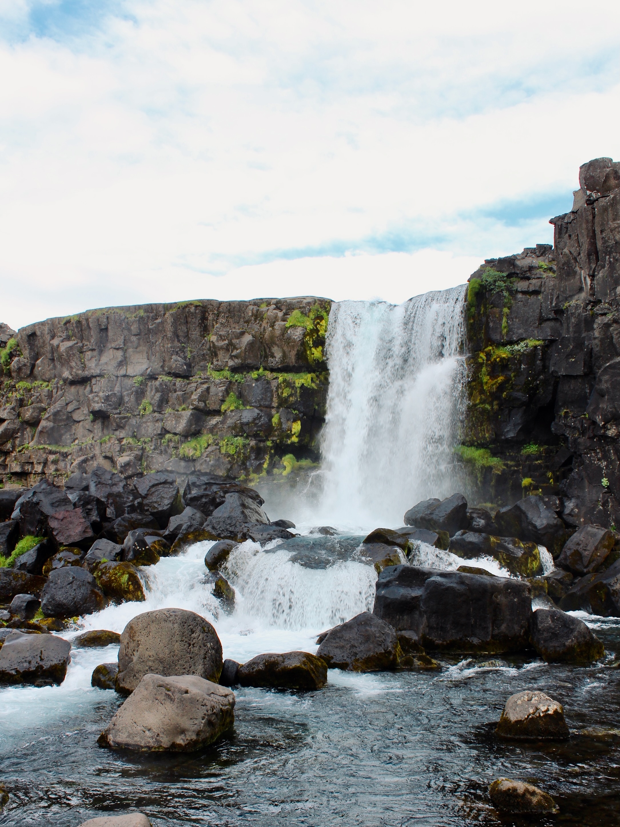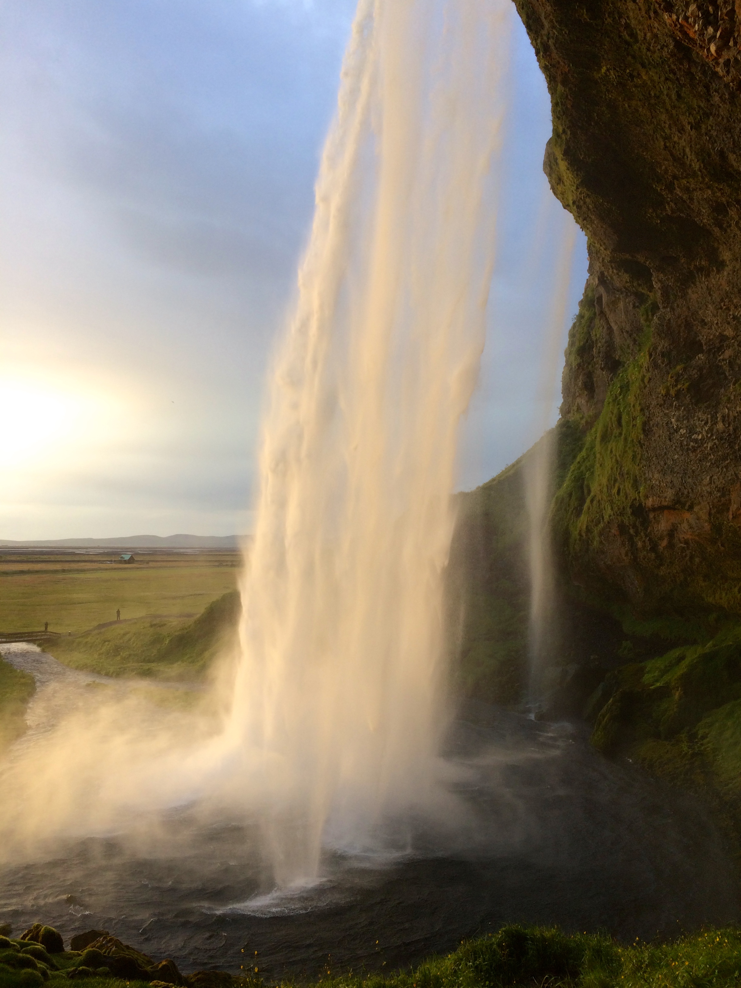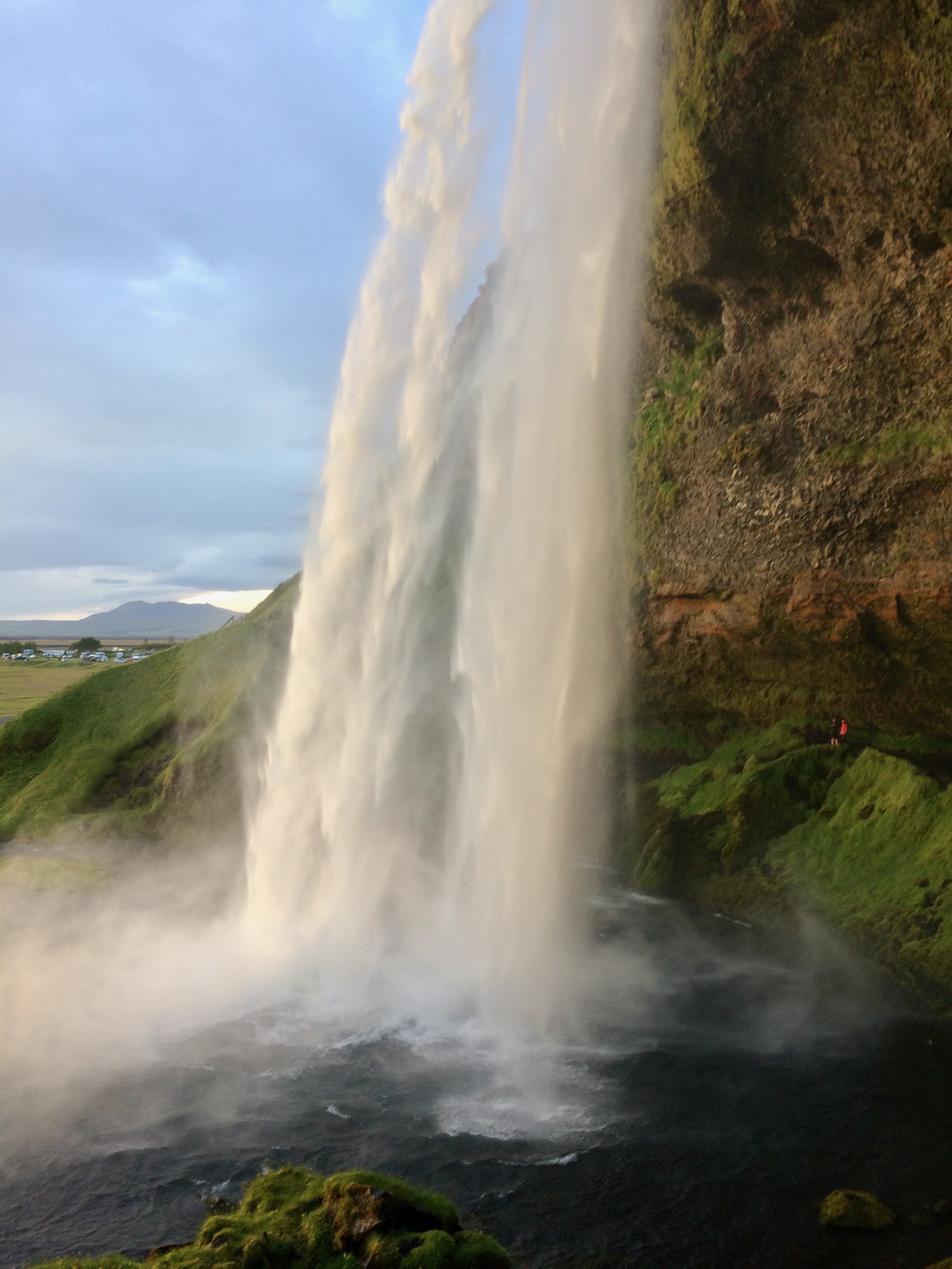 We arrived at the Þórsmörk Básar Huts around 6:30 PM, clocking in at eight hours of hiking time. The 8:30 PM bus made a stop at Seljalandsfoss right before arriving to Skogar. This waterfall is unique because you can walk underneath it, sheltered by a cove. We stopped at the waterfall before the hike, but golden hour only adds to its beauty.
