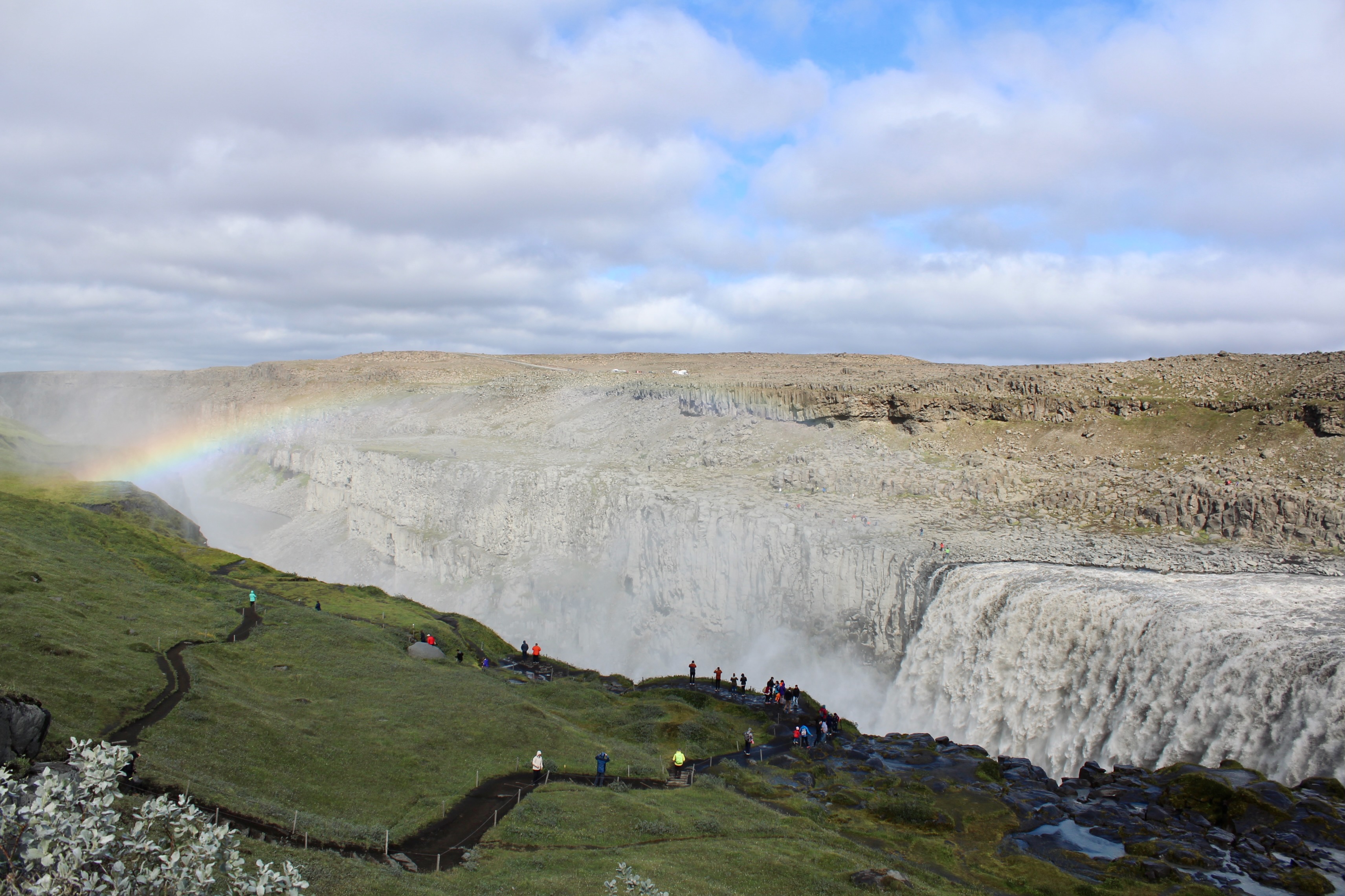 From the Ring Road, a quick 30-minute detour leads to the Eastfjords. The eastern coast of Iceland is made up of dramatic fjords that house picturesque fishing villages, like Seyðisfjörður. The town has a scenic mountain backdrop with clear skies, but manages to keep its charm even on a misty day. Continue north on the Ring Road to the Diamond Circle, which connects several impressive sights in northern Iceland. The first one is Dettifoss, the most powerful waterfall in Europe.