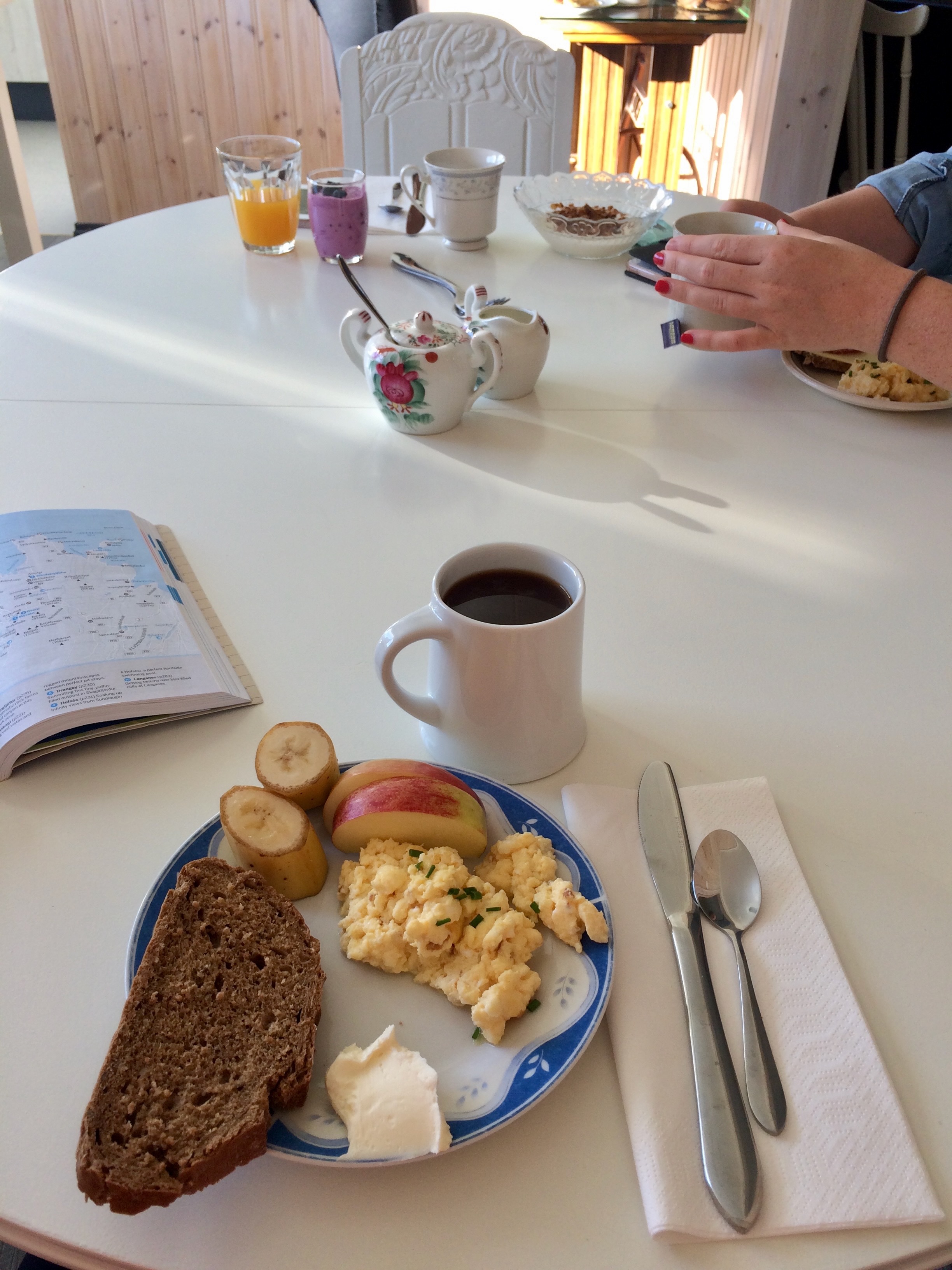 Instead of looping back to Reykjavík, we continued southeast for 110 km to Lindartún Guesthouse. This small guesthouse is tucked away in the countryside. The hostess prepares a delicious breakfast in the mornings and you can use the shared kitchen to prepare dinner. Given the remoteness of many locations and high restaurant prices, we opted for stays with kitchen facilities throughout our trip.